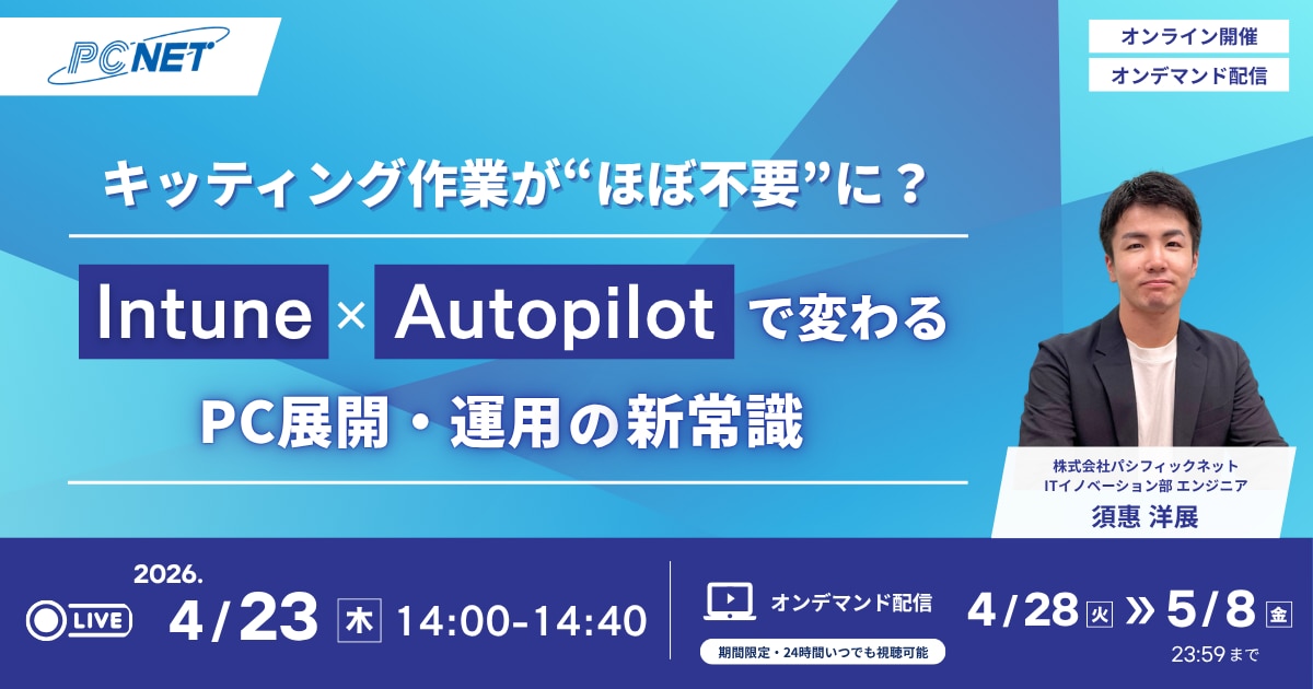 本ウェビナーでは、Intune × Autopilot を活用し、 PC展開を 「手作業」 から 「仕組み」 に変える方法を解説。